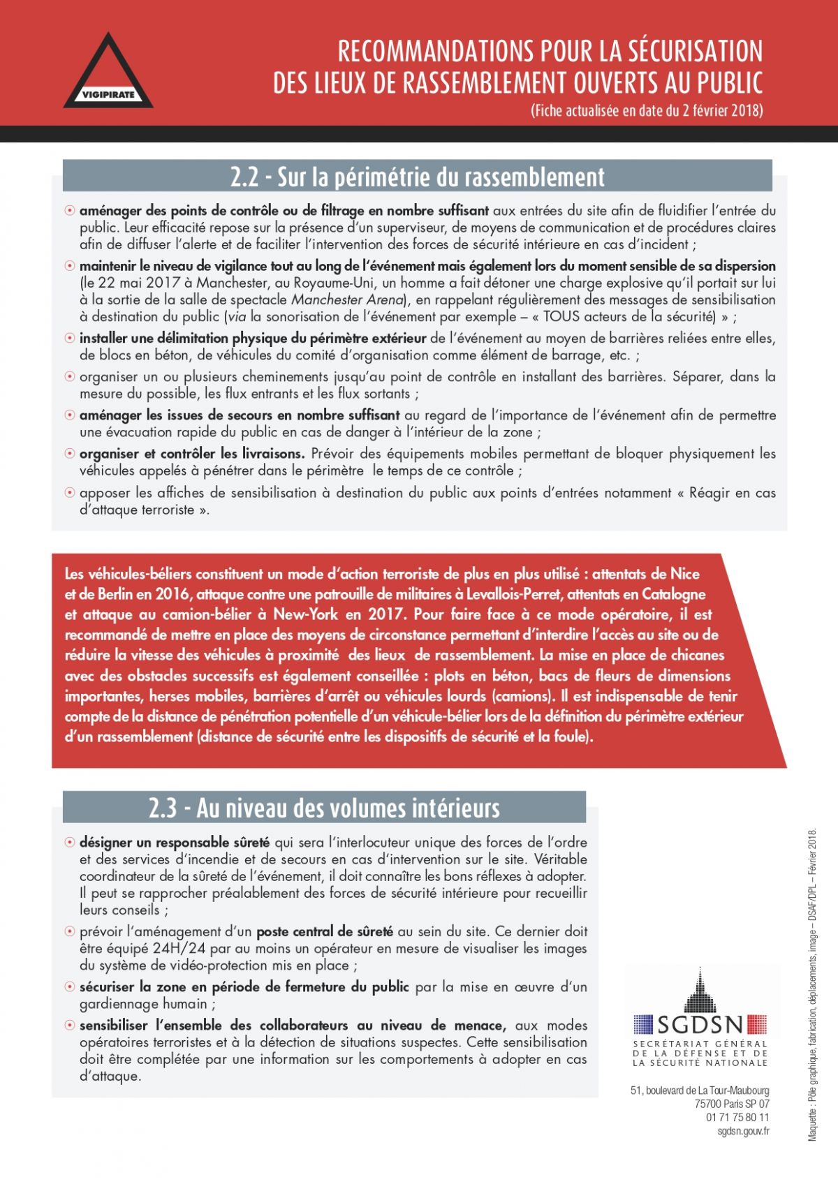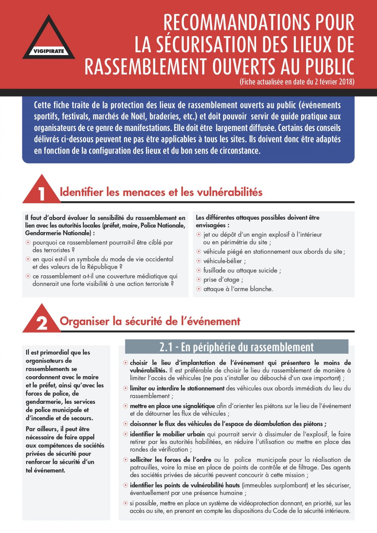Recommandations pour la sécurisation des lieux de rassemblement ouverts au public